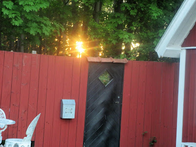 | Kvällssolen ger hallonhäcken en sista smekning för dagen. |